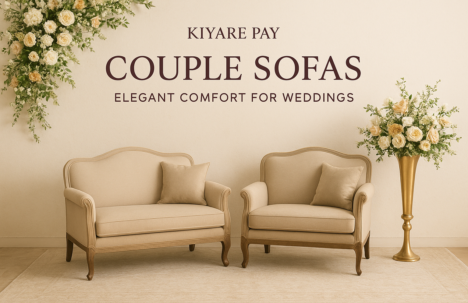 Kiyare Pay is a premium event rental service providing high-quality furniture and props for weddings and events in Vadodara, Ahmedabad, Nadiad, Anand, Bharuch, and Surat.